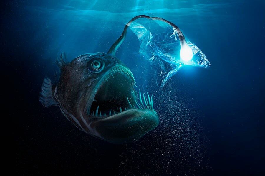 This ferocious-looking deep-sea fish that lure prey using a bioluminescent rod-like appendage growing from their snout. This appendage has a small organ at the tip containing millions of light-producing bacteria.