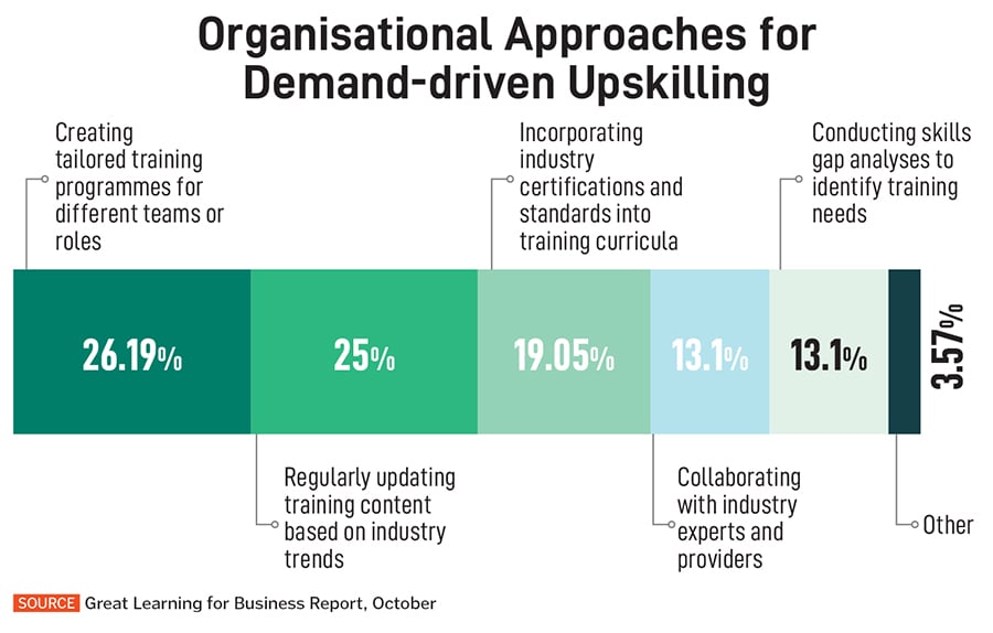 To this end, “As AI and emerging technologies reshape the landscape of work, enterprises are prioritising internal talent development over traditional hiring, focusing on cultivating agile, future-ready workforces across all levels,” says Ritesh Malhotra, enterprise head at Great Learning.