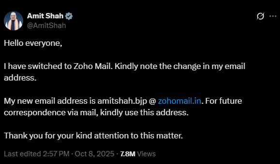 Recently, Home Minister Amit Shah announced his switch to Zoho mail. “I dedicate this moment to our hard-working engineers who have toiled hard in Zoho for over 20 years. They all stayed in India and worked all these years because they believed. Their faith is vindicated,” Vembu says.