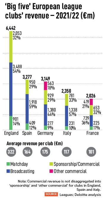 The 'Big Five' European leagues have generated €17.2 billion in 2022