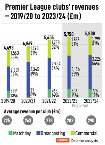 Deloitte's Annual Review of Football Finance 2023 suggests that commercial revenue has increased, but broadcast revenue has declined