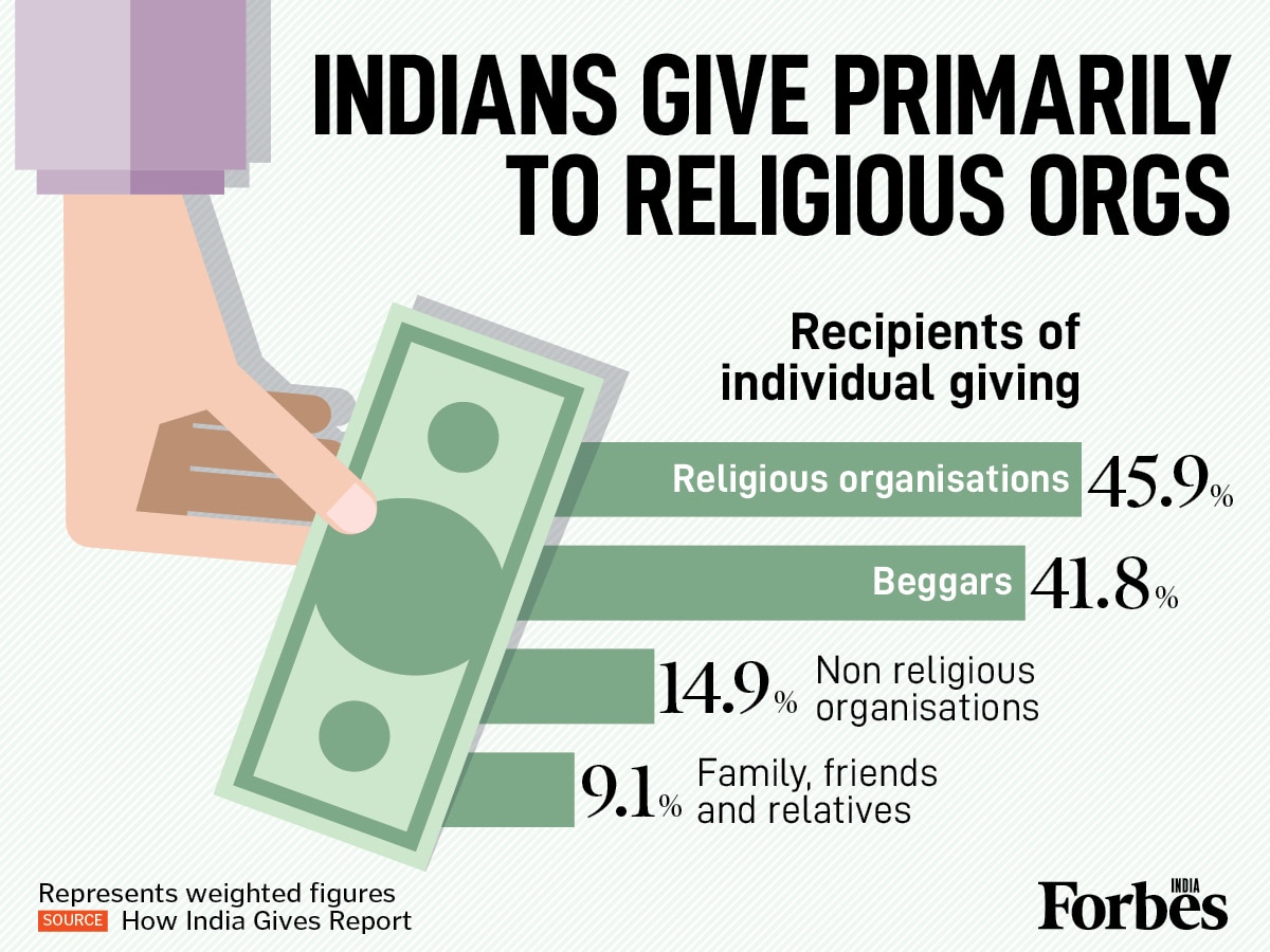 Nearly half of all charitable giving by individual Indians flows to religious organisations, according to the How India Gives Report by the Centre for Social Impact and Philanthropy at Ashoka University.