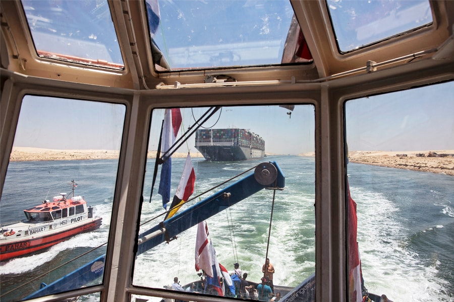 A container ship sails along Egypt"s Suez Canal near the canal"s central city of Ismailia. According to a Global Trade Research Initiative report, India is heavily reliant on the Red Sea route for trade and energy imports and faces increased costs and security risks. The rerouting of ships is expected to significantly impact Indian trade, causing a sharp increase in charter, freight and insurance costs as vessels will take 15 more days to get to Europe.