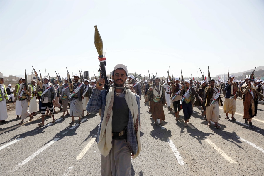 A file photo of armed Houthi fighters upon landing on a ship"s deck it seized in the Red Sea in late November. The Iran-backed Houthi militia, who control much of Yemen, has disrupted world trade for weeks with attacks on commercial vessels passing through the Bab-al-Mandab Strait at the southern end of the Red Sea, claiming solidarity with Palestinians besieged by Israel in Gaza. Despite Houthi"s claim, the targets have included ships not headed to or affiliated with Israel. The US announced a multinational maritime security initiative in the Red Sea in response to an attack on vessels by Houthis.