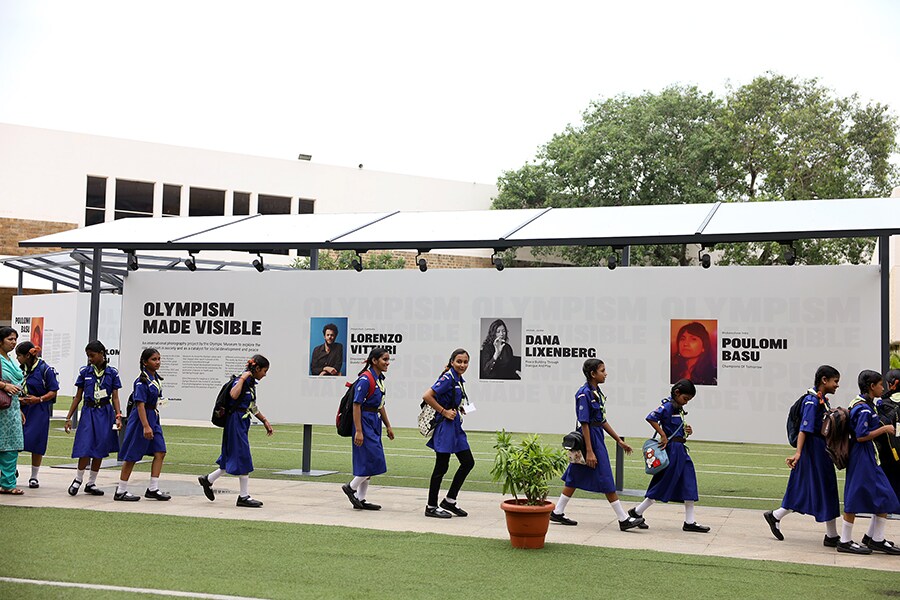 The exhibition premieres the works of Poulomi Basu, the only Indian among the 12 photographers commissioned by the IOC, who explored the influence of sports on children at public schools in Odisha’s Bhubaneswar, enrolled with the Olympic Values Education Programme (OVEP), an international educational initiative designed by the IOC. The OVEP was officially launched in India in 2022 in association with the Abhinav Bindra Foundation, a non-profit launched by Bindra, the Olympic champion shooter.