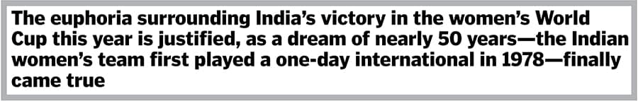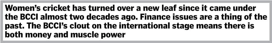 Women’s cricket has, of course, turned over a new leaf since it came under the BCCI almost two decades ago. Finance issues are a thing of the past. The BCCI’s clout on the international stage means there is both money and muscle power. Visibility has also improved—the ICC has stepped up marketing efforts, and tournaments like the Women’s Premier League (WPL), launched in 2023, have attracted greater brand participation. Social media has amplified player profiles further.