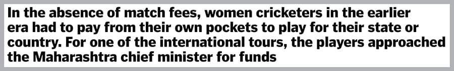 In the absence of match fees, women cricketers in the earlier era had to pay from their own pockets to play for their state or country. For one of the international tours, the players approached the Maharashtra chief minister and requested funds so that part of the expenses could be covered. “From arranging the nets to booking train tickets or playing without a coach or manager, we have done it all,” says Kulkarni, a former India captain.