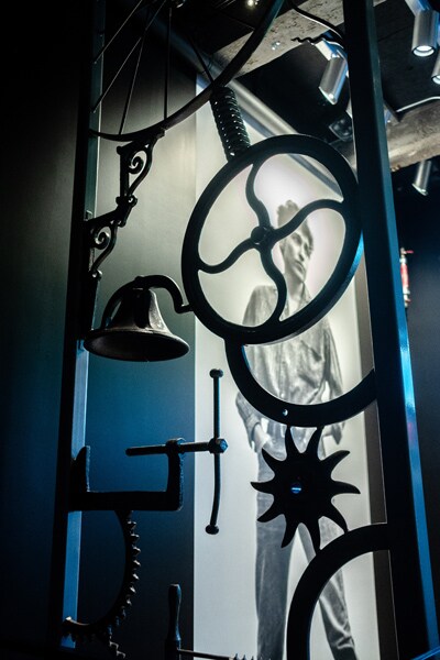 A metal gate crafted by Bob Dylan welcomes visitors to the Bob Dylan Center in Tulsa, Okla., April 30, 2022. A new space to display Dylan’s vast archive, celebrates one of the world’s most elusive creators, and gives visitors a close-up look at notebooks and fan mail. (Joseph Rushmore/The New York Times)