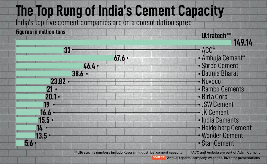With the acquisition of Kesoram's cement business Ultratech stretches its lead with Adani Cement