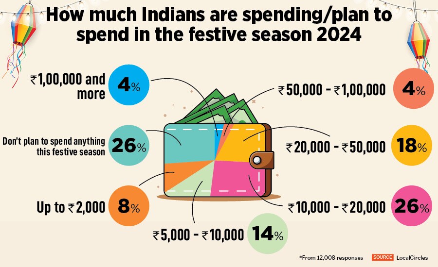 LocalCircles, an online survey platform, conducted an urban India survey to gauge household consumer sentiment regarding festival shopping, in order to understand whether households plan to shop this year, how much they intend to spend, and whether they prefer shopping at local markets or online. The survey, which included responses from 49,000 respondents across 342 distributors in India, also sought to determine what items are on the shopping lists of the respondents. For an average family, household budget and savings typically dictate spending during festive occasions. According to the survey report, one in two urban Indian households plans to spend over Rs10,000 this festive season. With approximately 80 million urban households in India, applying these averages suggests that urban India could spend around Rs1.85 lakh crore, or $22 billion, during the 2024 festive season.