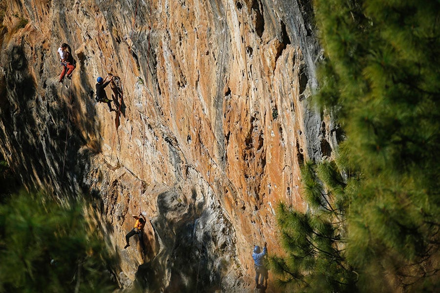 Visually impaired people gather from all over Nepal to participate in a rock-climbing event at Pharphing on the outskirts of Kathmandu, Nepal, January 07, 2023. Held for the first time in the country, the climb was organised by two non-profit organisations Guffy Monkey and Blind Rocks, working to empower visually-impaired people and enable them to lead independent and productive lives.
