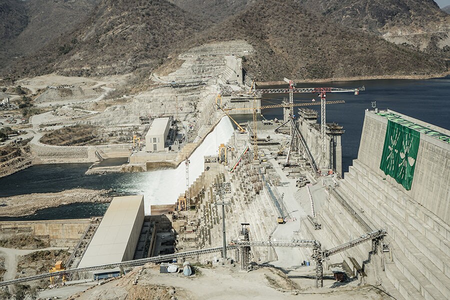 This is a general view of the Grand Ethiopian Renaissance Dam (GERD) in Guba, Ethiopia. Ethiopia"s massive hydroelectric dam project on a tributary of the Nile near the Ethiopian-Sudanese border has raised regional tensions, notably with Egypt, which depends on the vast river for ninety-seven percent of its water supply. Negotiations involving Ethiopia, Sudan, and Egypt over the GERD exemplify the difficulties of effectively managing shared water resources. Downstream nations like Egypt are particularly concerned about the impact on their water supply.
