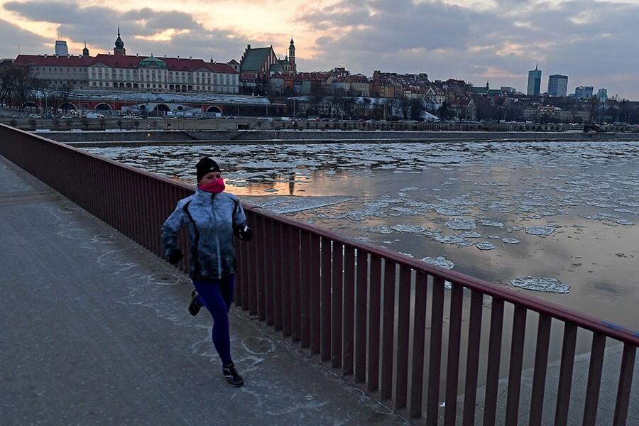 A local jogs along the partially frozen Vistula River in the Polish capital, Warsaw. Belarus, Poland, Slovakia, and Ukraine—all parties to the Water Convention—share the Vistula River Basin. The basin covers 193,960 km, most of which is in Poland. As pollution generated by countries upstream affected the water quality in Poland, Polish authorities have been working with their counterparts in Belarus and Ukraine for over 20 years to improve water quality in the Vistula.