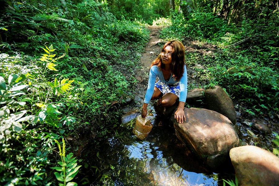 Andrea Gomez from the indigenous community Mby"a Guarani, which hunts and fishes on the Parana River, fills water from the river at Parque Nacional Moises Bertoni, Presidente Franco, Paraguay. When the mighty Paranà¡ River—South America"s second-largest—almost dried up in 2021, Brazil, Paraguay, and Argentina were able to share the limited water supplies peacefully and sustainably. Indigenous people have been involved in violent conflicts over water and land protection because they don"t want a dam built and their forests and rivers to be destroyed.