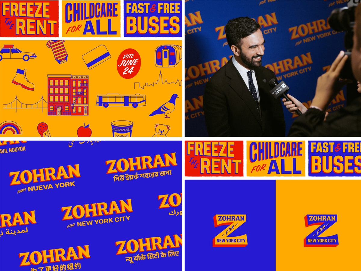 Mamdani’s vibrant visual identity was designed by the self-taught Indian-American designer Aneesh Bhoopathy, who co-runs the agency Forge in Philadelphia. Bhoopathy also worked on Mamdani's campaign in 2020 when he successfully ran for the Assembly in Astoria, Queens. Mamdani approached him again in 2024 to design the campaign identity with a creative brief requesting him to focus on an exploration of New York City iconography.