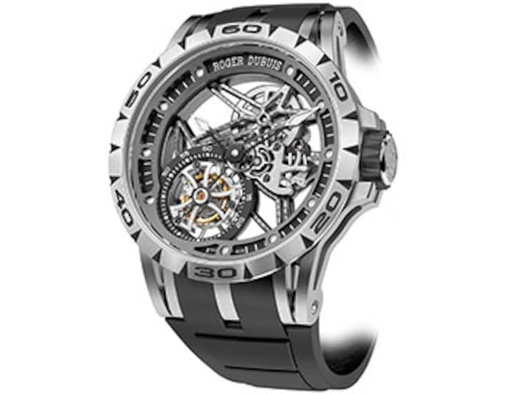 With the Excalibur Spider collection, Roger Dubuis takes the skeleton theme beyond the movement, extending it to the case, flange and hands. The collection is named after the complexities of the spider’s web, a skeleton-work found in nature. The Excalibur Spider Skeleton Flying Tourbillon picks up the signature features of Roger Dubuis skeleton watches, the star-shaped design, the tourbillon carriage shaped like a Celtic cross and the high-end finishes including a circular-grained plate.