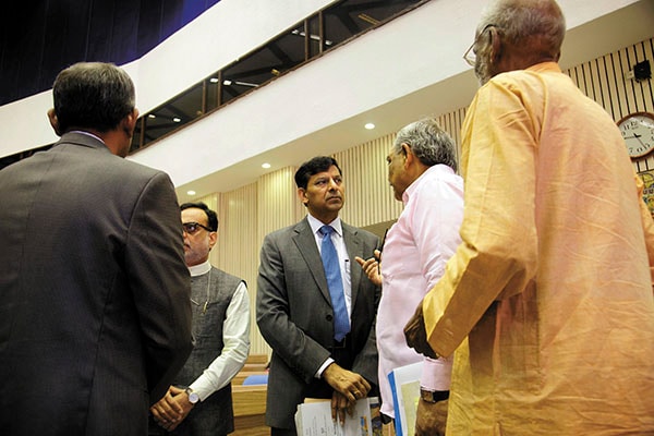 Raghuram Rajan, governor, Reserve Bank of India (centre) at the launch of the Micro Units Development and Refinance Agency (MUDRA) Bank in New Delhi