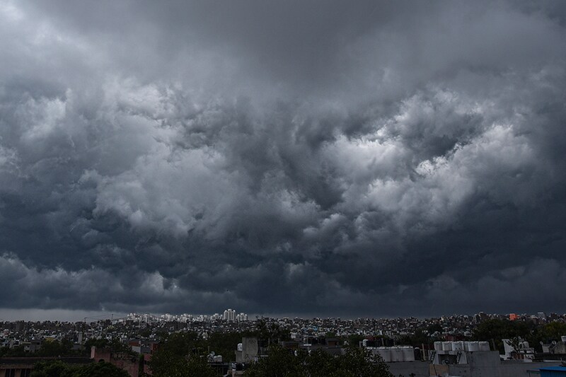 Heavy clouds are seen hovering over the skies after heavy rains at Anand Parbat, on October 17, 2021, in New Delhi, India. The India Meteorological Department issued a new rainfall alert on Sunday saying light intensity rain or drizzle would occur over and adjoining areas of isolated places of entire Delhi.Image: Sanchit Khanna/Hindustan Times via Getty Images
