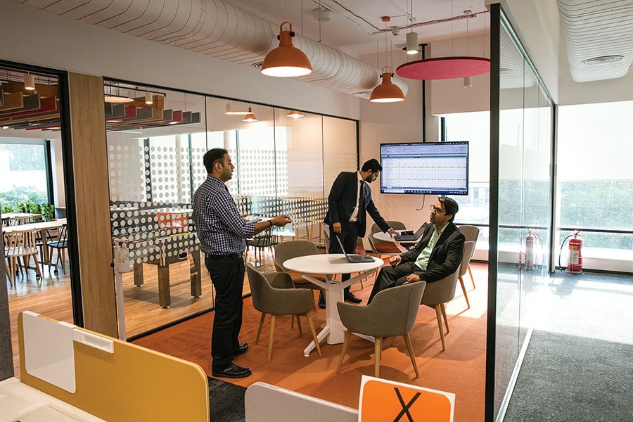 A team from Simpliwork holds a maintenance meeting at their space in Gurugram, which houses the MasterCard office. Originally offering ‘built-to-suit’ flexible spaces, Simpliwork is now keeping spaces with 100 to 300 workstations ready for companies to move in as soon as they need to
