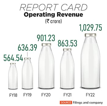In fact, the last few years have been transformational for Gyan. The dairy company, which started with skimmed milk powder and ghee, now has a product portfolio comprising milk, skimmed milk powder, butter, ghee, paneer (cottage cheese), curd and animal feed. The revenues have jumped from ₹564.54 crore in FY18 to ₹1,029.75 crore in FY22. While milk makes up 37.21 percent of sales, skimmed milk powder’s contribution stands at 21.33 percent, followed by ghee and butter at 20.31 percent and 7.72 percent respectively.