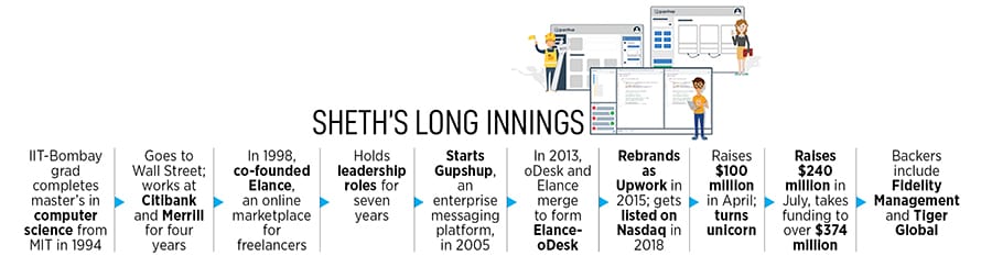 With Elance, the Wall Street high-performer was trading comfort for a promising future. For the first year, his salary was zero. “I was living on my wife’s income," says Sheth, explaining why it was hard for him to take a risk. A part of the blame, he lets on, goes to his high performance in school, college and then a high-paying job. He came first in the National Talent Search, a national scholarship programme at the secondary school level to identify students with high intellect and academic talent was ranked third in the Indian Math Olympiad was a top ranker in the IIT entrance exam and went on to crack MIT.