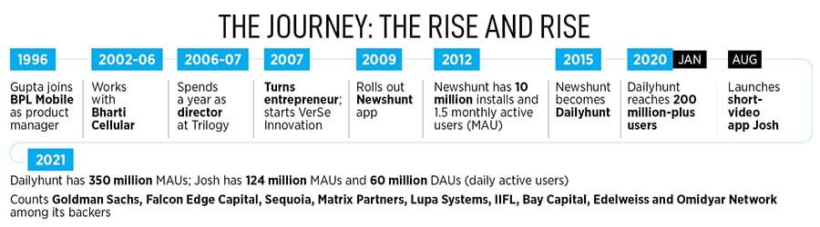 In 2011, Gupta changed gears, and made a pivot. He bought Newshunt, which was delivering local language news content on mobile, and moved from B2B to B2C business. To outsiders, the move again seemed irrational. Reason: Miniscule—almost negligible—local language internet users. Back then, he recalls, internet meant only English-speaking users. “It was for people in the boardrooms and cities. Bharat was missing," he says.