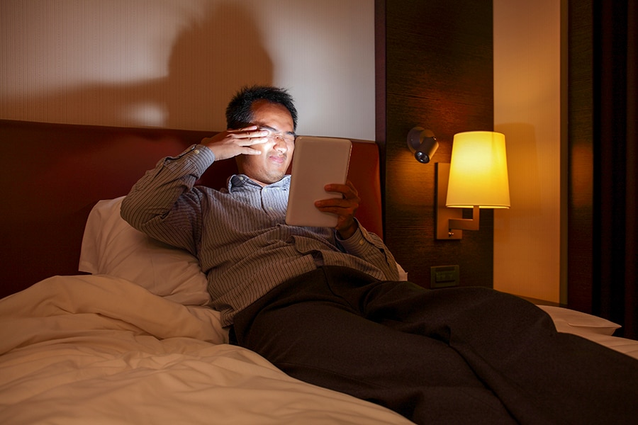 Many studies show that the blue light from our cell phones and other devices actually interferes with melatonin production, making it more difficult to get into a deep sleep state.