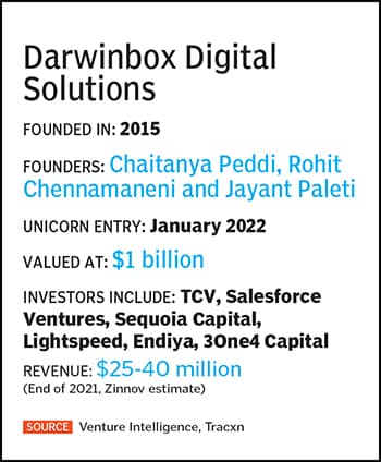 Darwinbox, a human capital management platform provider, was founded by Chaitanya Peddi, Rohit Chennamaneni and Jayant Paleti in 2015. The venture turned unicorn in January with a $72 million Series-D investment led by Technology Crossover Ventures that valued it at $1 billion.