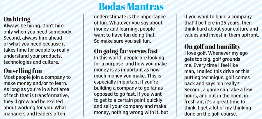 Building Icertis to where it is today has given Bodas much insight into both businesses and people. “Culture and values are so much more important than you ever thought," he says. “Even in the startup world, while it’s more talked about in the corporate world. People are looking for purpose, and how a company makes money becomes really important if you’re building a company to go far as opposed to going fast."