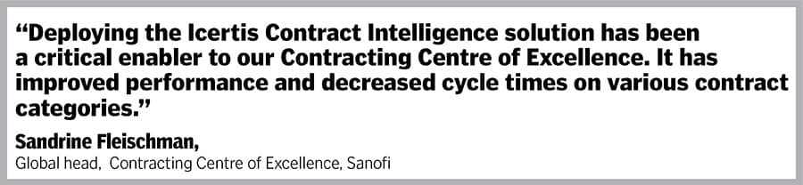 Icertis’s solution “has been a critical enabler to our Contracting Centre of Excellence", Sandrine Fleischman, global head of Contracting Centre of Excellence, Sanofi, said in a statement in March. “It has improved performance and decreased cycle times on various contract categories."
