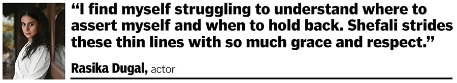 Rasika Dugal, Shah’s co-star in Delhi Crime who also has a role in Once Again, is in awe of how the actor takes charge of a scene, while respecting the space of her director, co-actors and other people on the team. “These are tricky things in any creative collaboration. I often find myself struggling to understand where to assert myself and when to hold back. But she strides these thin lines with so much grace and respect, it’s wonderful to watch," she says. “Whenever I’m doing a scene with Shefali, I know she will find a way to make it work."