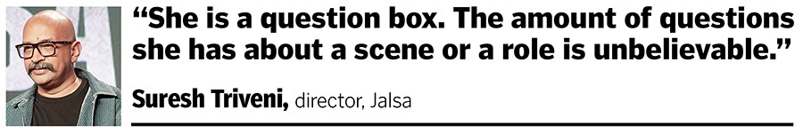 Filmmaker Suresh Triveni, who directed Shah in Jalsa, recollects the climax of the film, where the sun was setting, and he had wanted Shah to shed tears in a way that it could be captured by the camera on her right-hand side. “And she gave me that. Not once, but three times. She can cry at will, it’s incredible," he says. That said, he adds that Shah has to feel what she’s required to emote. And in order to get under the skin of the character and understand their motivations, Shah keeps asking questions. “She is a question box. The amount of questions she has is unbelievable," Triveni says.