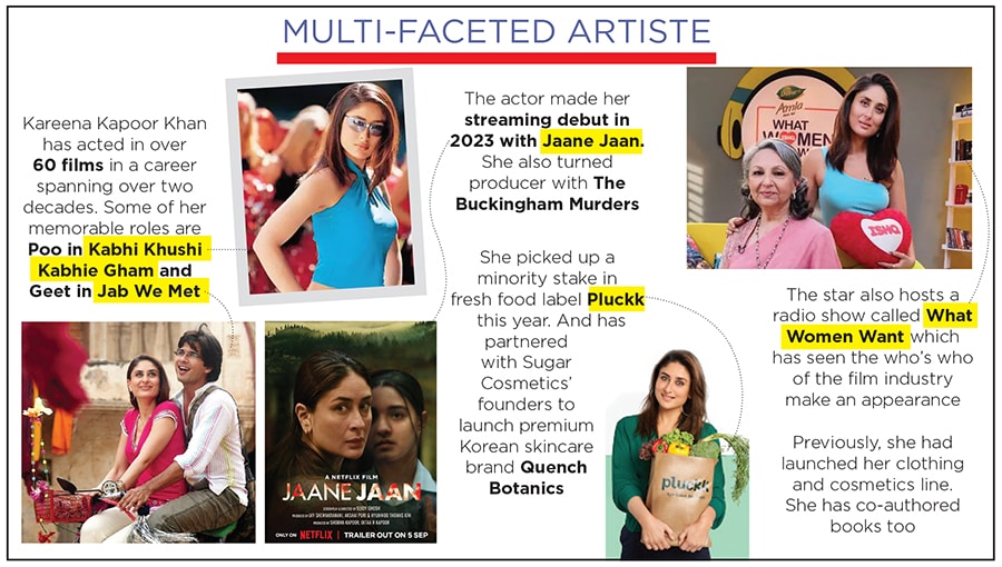 Her filmography screams that aloud. She’s balanced commercial cinema—Golmaal Returns (2008), 3 Idiots (2009), Bodyguard (2011), Bajrangi Bhaijaan (2015), for instance—with memorable roles in ‘serious’ or ‘offbeat’ films like Chameli, Yuva, Dev (all 2004) and Omkara (2006), among others. “Straddling both the worlds and having the power to do that is something that I wear proudly on my chest," says the actor. “Doing different parts, whether it’s the dark ones that I’ve done previously, or now Jaane Jaan or The Buckingham Murders, keeps me at peace with the artiste that’s inside me. And I’ll keep doing the big blockbusters because that is also a part of my DNA."