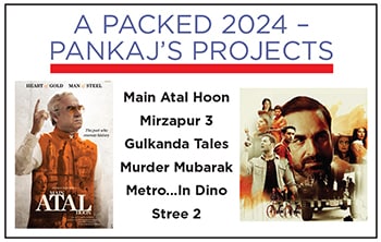 The next few months also look bright for the star. He plays the lead as former prime minister Atal Bihari Vajpayee in a biopic titled Main Atal Hoon. Other soon-to-be-released web series and movies include Mirzapur 3, Stree 2, Murder Mubarak, and Metro In Dino.