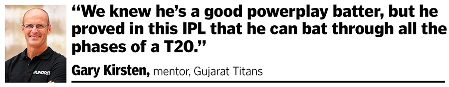 Gary Kirsten, the mentor for Gujarat Titans, Gill’s IPL franchise, doesn’t believe six-hitting is a skill that the opener has acquired afresh. “He’s always had the skills. It is more about the awareness that that’s what he can do," says Kirsten. “Those are conversations that both [coach] Ashish [Nehra] and myself had quite a bit with him, that you can accelerate a lot more than what you think. We’ve always known he’s a good powerplay batsman, but I think he proved in this IPL that he can bat through all the phases of a T20 game."