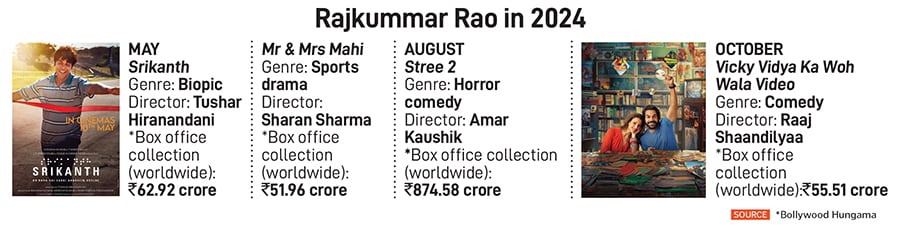 Rao was one of the most commercially successful stars in 2024. He started the year with Srikanth, the biopic of visually impaired entrepreneur Srikanth Bolla, founder of Hyderabad-based Bollant Industries. The actor had four releases in total (see box), which cumulatively posted over ₹750 crore of lifetime earnings at the box office in India, as per Bollywood Hungama.