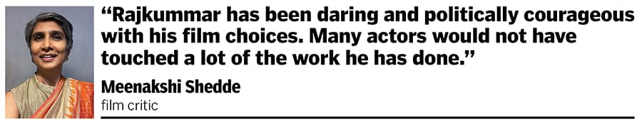 Stars and conventional good looks drive the film industry, Shedde says. Rao’s big achievement, therefore, is how he has managed to build a career on the back of skills so strong that his lack of conventional good looks has become irrelevant. She points to how, with films like Shahid, Aligarh and Omerta, Rao’s work has frequently questioned our Islamophobia, our homophobia and many prejudices. “In Badhaai Do (2022), he played a homosexual cop embedded in the system. That is courageous on so many levels," she says.