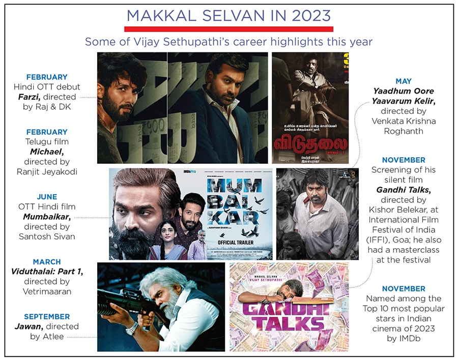 The next year is looking eventful too, starting with the release of his next Hindi film, Sriram Raghavan’s Merry Christmas alongside Katrina Kaif, in January 2024. Then there is the second instalment of Viduthalai, his 50th film, Maharaja, and a Tamil OTT show, among other projects.