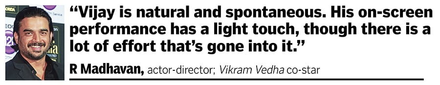 Madhavan says that Sethupathi doesn’t make an effort to look different or stand out, which makes him a breath of fresh air. “He is natural and spontaneous. He never labours over a performance on-screen, even though there is a lot of effort that’s gone into it."