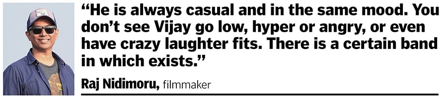 Most actors are distracted. They will be on your film set, but busy on their phones or talking about something else, filmmaker Nidimoru says. “Very few actors are listening. Very few actors are present in the moment and therefore mining themselves to do better. That’s what Vijay does."