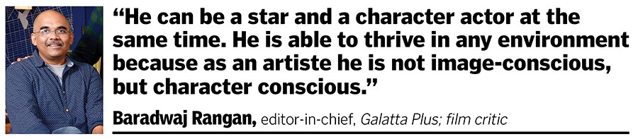 The actor has the passion to do something new in each scene, and the good part is that he breaks it down to the director and explains his thought process with a lot of patience. “He is a commercial actor with ‘arty’ sensibilities. He is a great mix of both cinemas, and can fit in parallel cinema and commercial roles with equal ease," the filmmaker says.