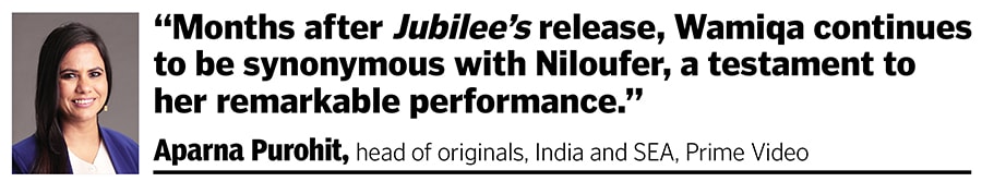 Aparna Purohit, head of originals, India and SEA, Prime Video, the platform on which Jubilee was streamed, agrees that Gabbi embodied Niloufer to an extent where it was impossible to imagine anyone else in that role. “Months after the show’s release, Wamiqa continues to be synonymous with Niloufer, a testament to her remarkable performance," she says.