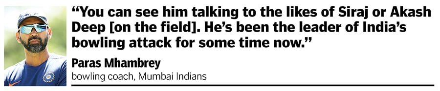 “You can see him talking to the likes of Siraj or Akash Deep for example, discussing the field, the line they should bowl etc. He’s been the leader of India’s bowling attack for some time now. And the others respect him for that," says Mhambrey. “I would always want him to drive team meetings because he has so much experience."
