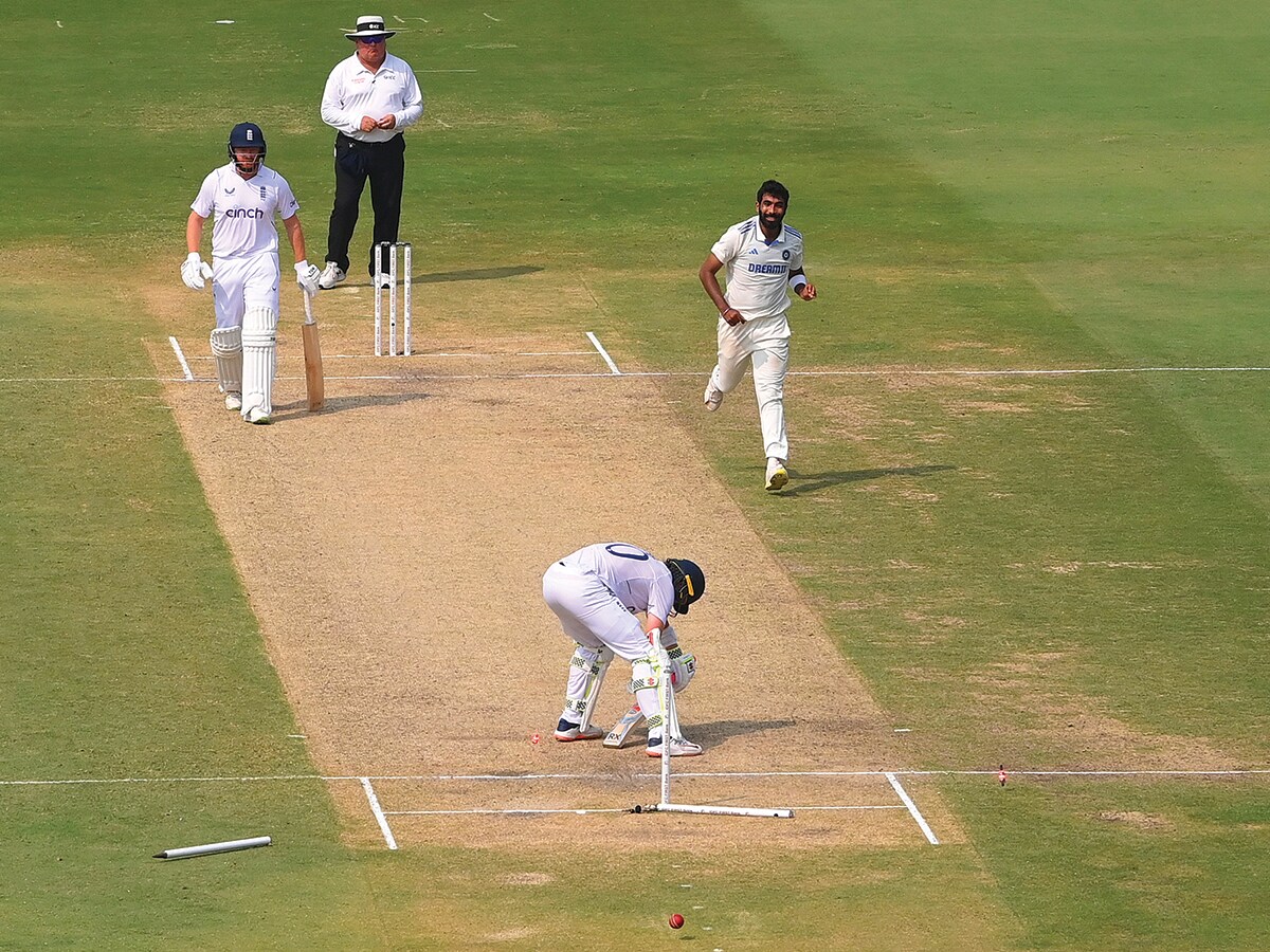 In February, during the second Test match against England in Visakhapatnam, Bumrah sent the cricket community into raptures with a toe-crushing, laser-guided yorker that skittled the stumps of Ollie Pope, the centurion in the previous match. As The Guardian’s match report of the day describes it: “Middle stump jagged left, leg stump flew right, leaving off stump standing there all alone. Pope’s feet were briefly in a different postcode, his bat on the floor."