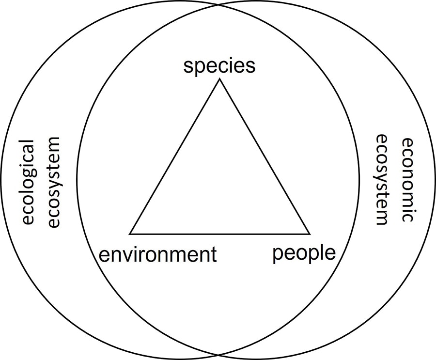 An inclusive model like "The Golden Triangle," first developed at The Tiger Center (TTC), is handy for decision-making. There is space on the fringe of economics and ecology where they do not interact, but most decisions by both affect the other.