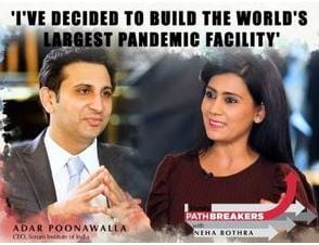 6. Fighting the crisis in record time Adar Poonawalla, CEO of Serum Institute of India, joins Neha Bothra on the next edition of Pathbreakers and gets candid about what it takes to be at the forefront of an pandemic, and how his company manufactured billions of doses of the Covishield vaccine in record time. The pandemic is over, but Poonawalla hasn"t let go of the learnings. Poonawalla also shares the strategic roadmap for the NBFC business, Poonawalla Vision Fund, and listing plans for different verticals, why they are not looking to list Serum Institute currently, and more. Watch the full episode here.