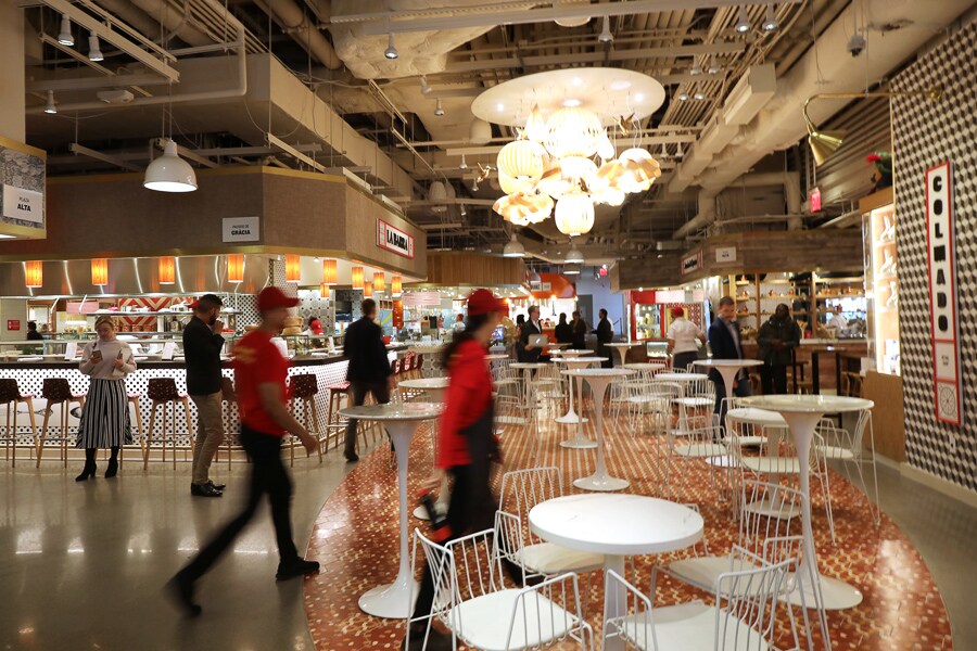 A Spanish food marketplace And restaurant called Little Spain was opened by Chef Jose Andres In New York City"s newly opened Hudson Yards Area in late March 2019.  The 35,000-square-foot food hall features three full-service restaurants wine, tapas, and cocktail bars a coffee shop and nearly a dozen food stalls. Image: Spencer Platt/Getty Images