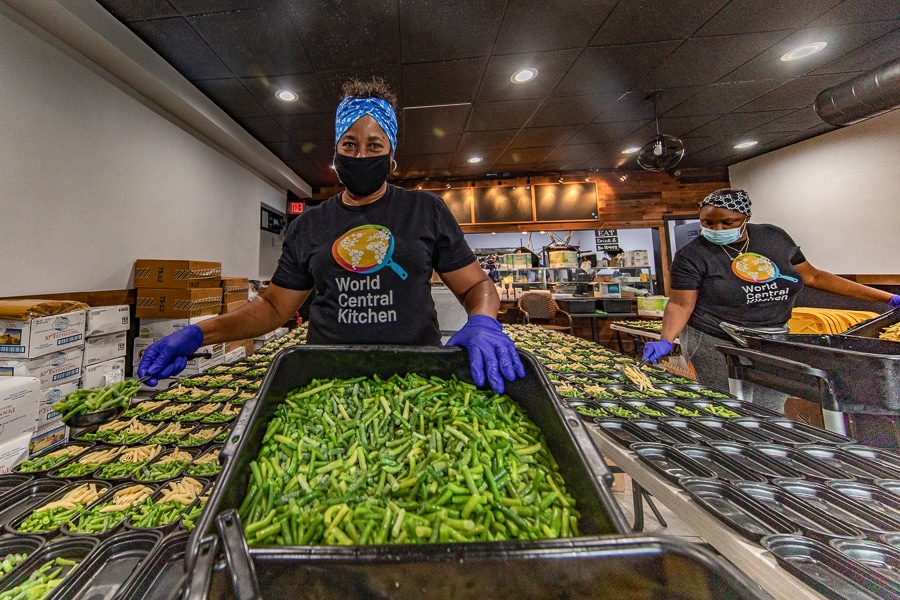 ![]() WCK volunteers pack food at their relief kitchen in New Jersey during the pandemic