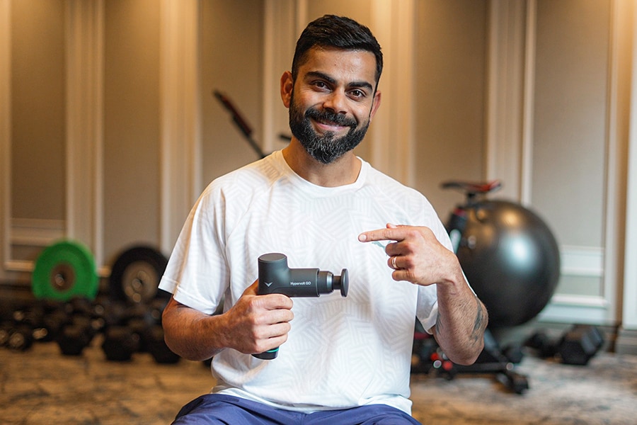 Virat Kohli with the Hyperice Hypervolt Go, a percussion massager Image: Hyperice[br]