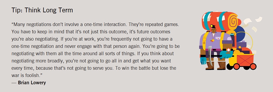 Brian Lowery: “People don’t see how often they’re negotiating. In fact, you can say any interaction where people have preferences and they’re trying to come to a decision jointly is a negotiation. When you go out with your partner and you’re like, What are we going to have for dinner? That’s negotiation. Are we going to have kids or not? Negotiation. What are we going to do on vacation? Negotiation. If you think about engaging with other people and there are decisions to be made, there are constant negotiations happening."